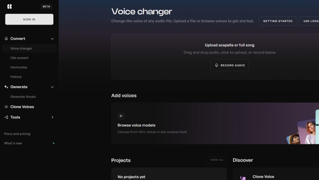 Kits AI lets you create an AI clone of your voice by feeding it a few hours of vocal recordings. Once trained, the software sings whatever lyrics or melodies you throw at it, no new takes required.