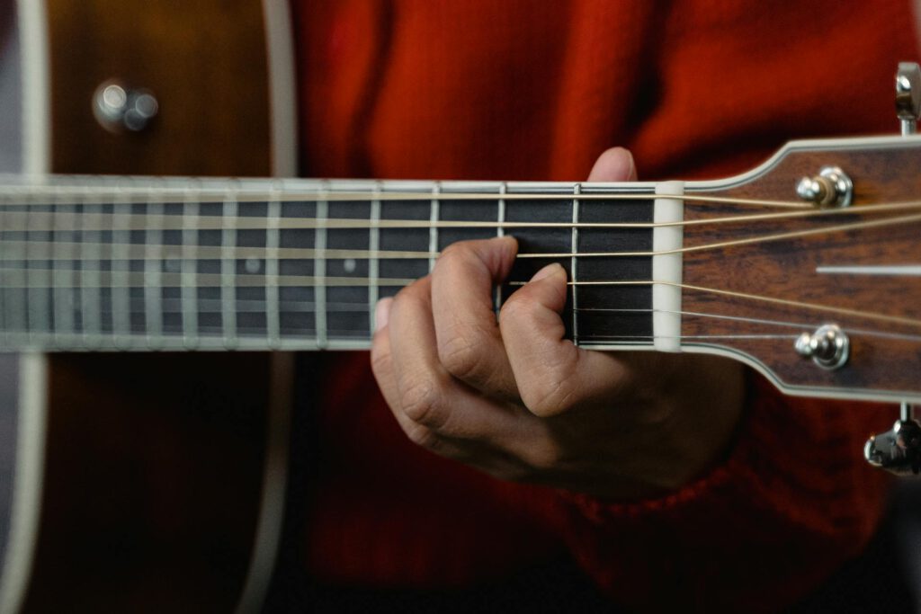 Fingerpicking lets you play melody, harmony, and rhythm simultaneously, adding depth that makes basic strumming sound like amateur hour. Think of your right hand as a finely tuned machine: thumb handling the low E string, index finger hitting the G string, middle finger on the B string, and ring finger plucking that high E.